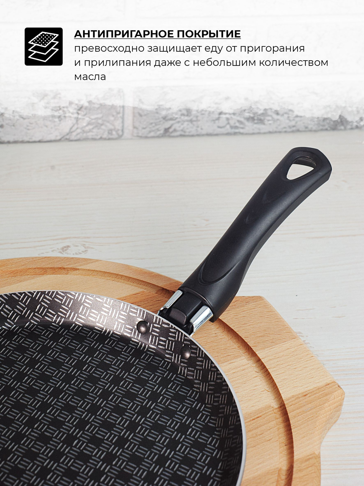 Специальная форма сковороды идеальна для жарки оладий, блинов и яичницы.