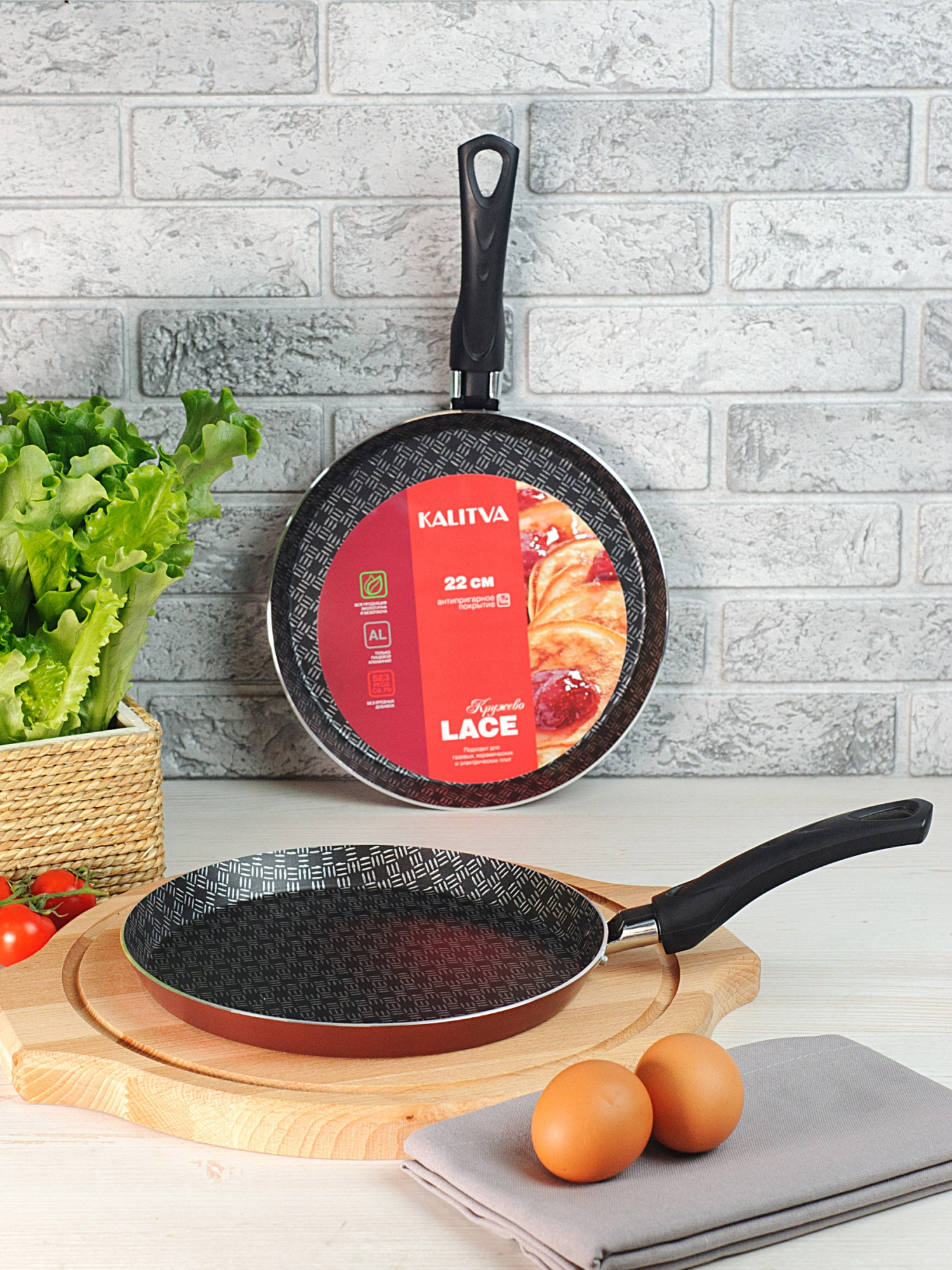 Специальная форма сковороды идеальна для жарки оладий, блинов и яичницы.