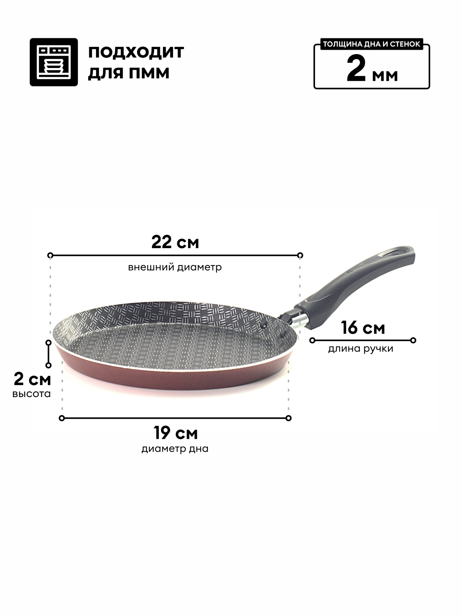 Изделие идеально подходит для приготовления пищи с минимальным количеством масла и жиров, пища не пригорает и не прилипает к стенкам и дну посуды.