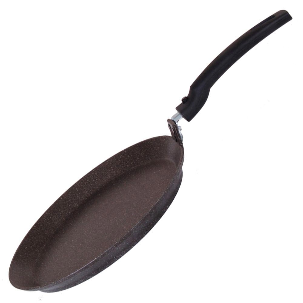 Блинная сковорода "Kukmara" 220 мм изготовлена из литого алюминия и покрыта инновационным антипригарным мраморным покрытием нового поколения на водной основе, усиленным сверхтвердыми частицами минералов, фирмы "Weilburger Coatings GmbH" (Германия).