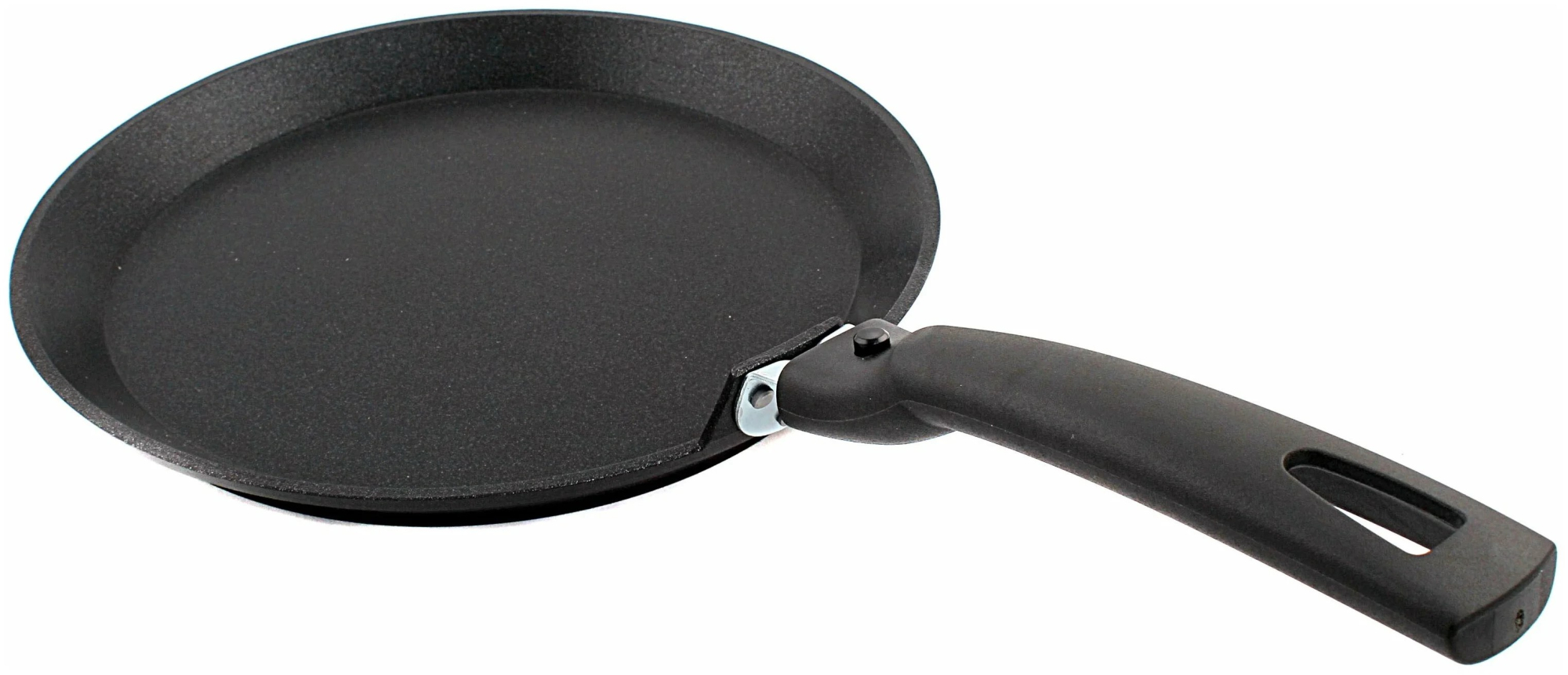Блинная сковорода Kukmara 240 мм изготовлена из литого алюминия и покрыта инновационным антипригарным мраморным покрытием нового поколения на водной основе, усиленным сверхтвердыми частицами минералов, фирмы "Weilburger Coatings GmbH" (Германия).