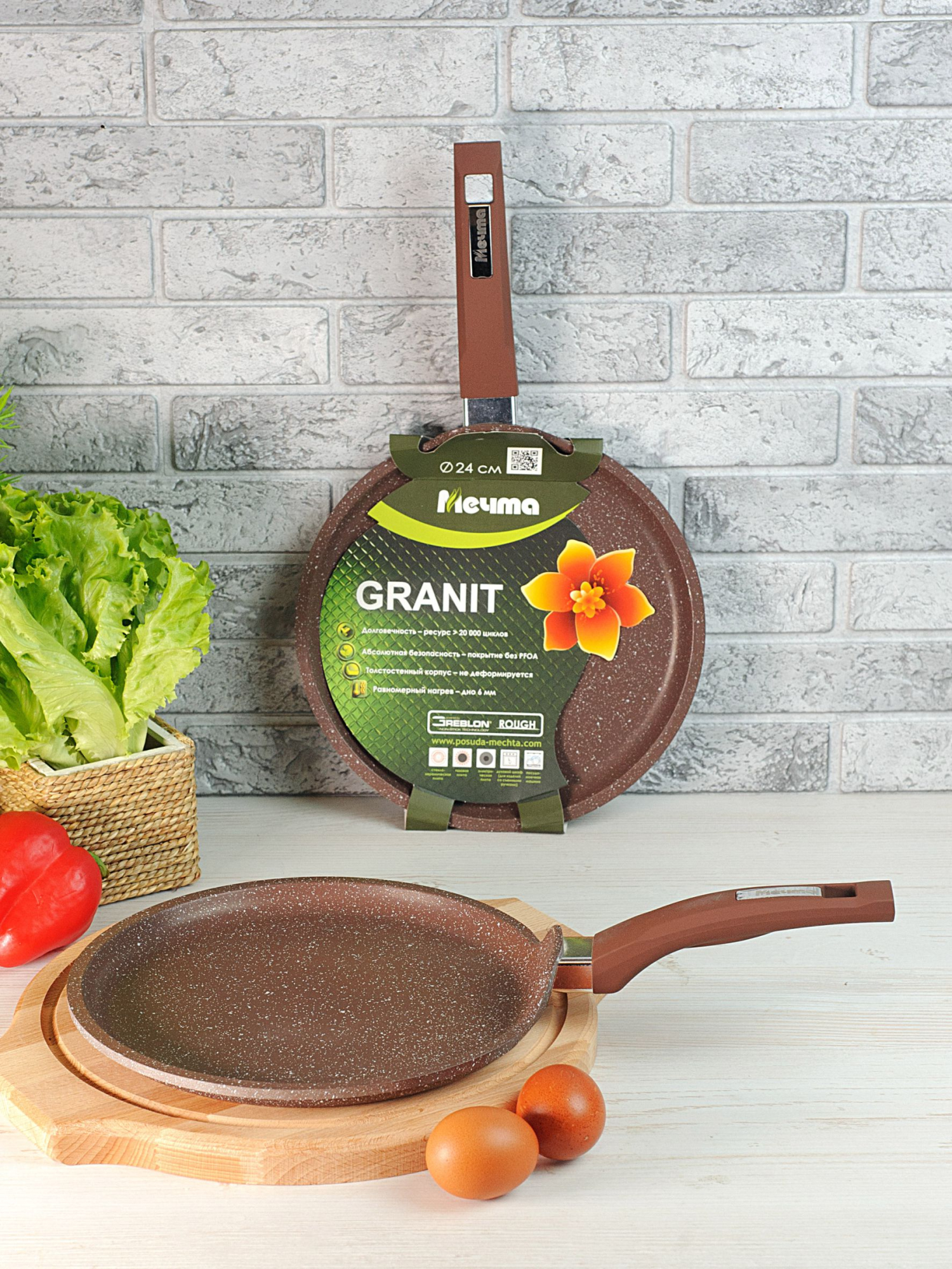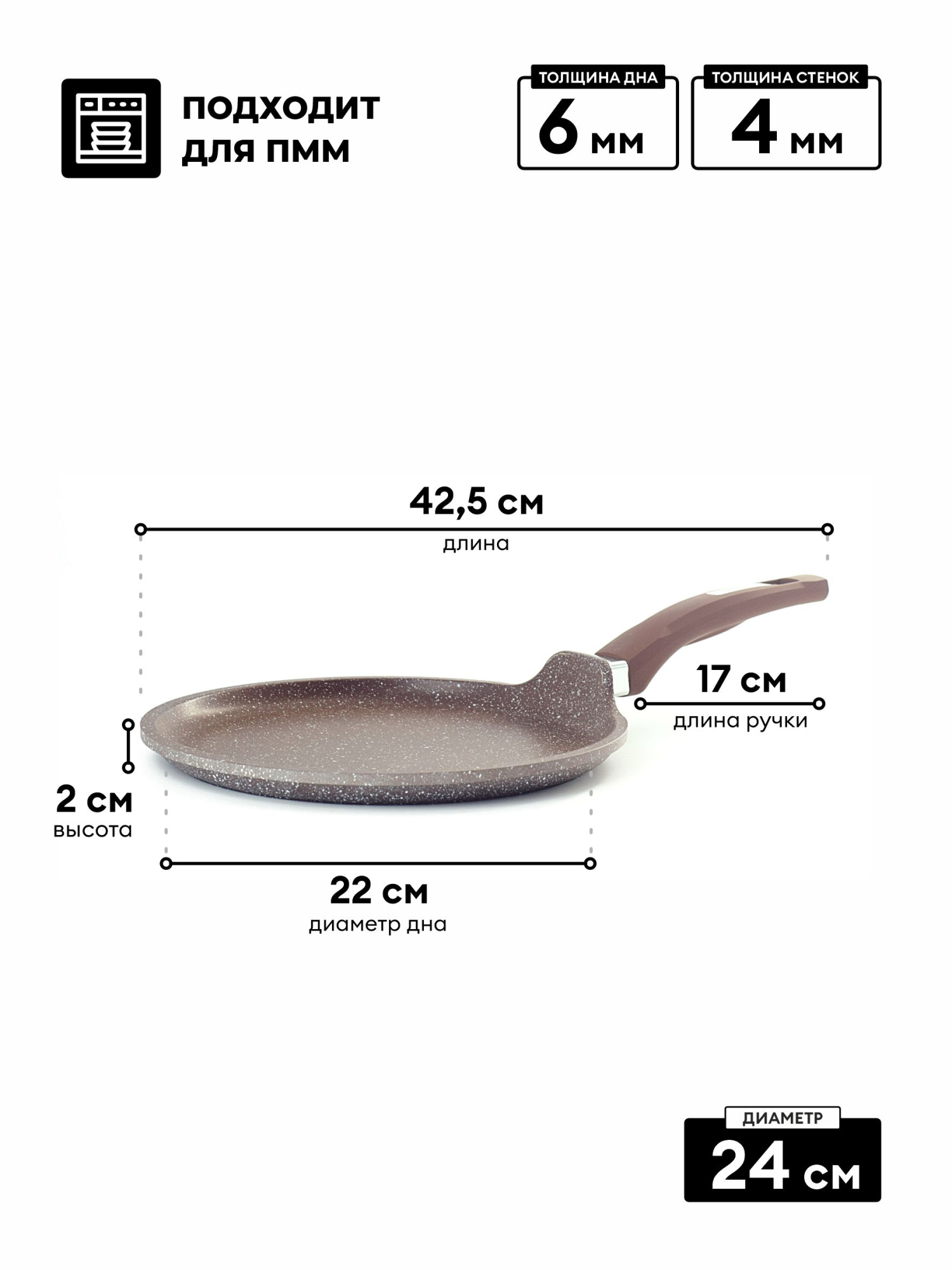 Блинная сковорода - блинница Гранит с антипригарным покрытием имеет толстое дно, невысокие бортики и удобную ручку.верхпрочное антипригарное покрытие отличается особой износостойкостью и превосходными антипригарными свойствами, рассчитано на интенсивное использование в течении длительного срока