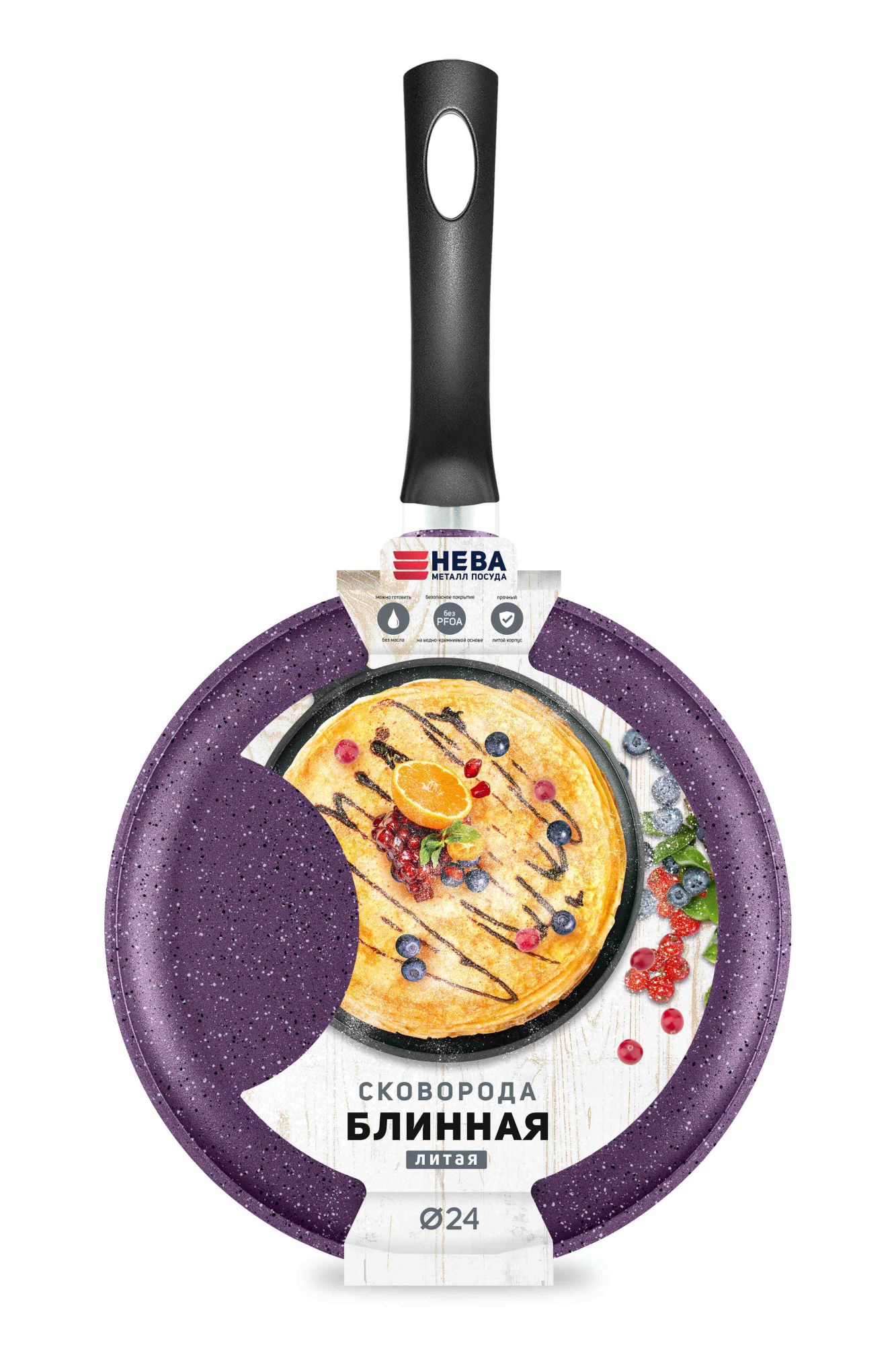 Литой алюминиевый корпус не подвержен деформации и обеспечивает равномерный нагрев. Многослойное покрытие усилено минеральными частицами, долго сохраняет антипригарные свойства. Низкий борт позволяет легко переворачивать и снимать блины.