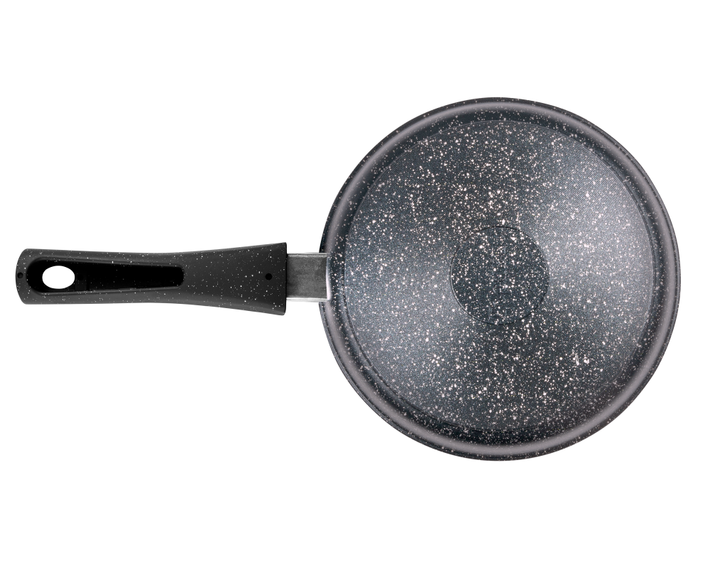 Сковорода изготовлена из высококачественного литого алюминия, который отличается исключительной долговечностью, равномерным нагревом и способностью сохранять тепло. Это способствует экономии энергии и ускоряет процесс приготовления пищи. Утолщенное дно обеспечивает равномерное распределение тепла, что положительно сказывается на качестве блюд.