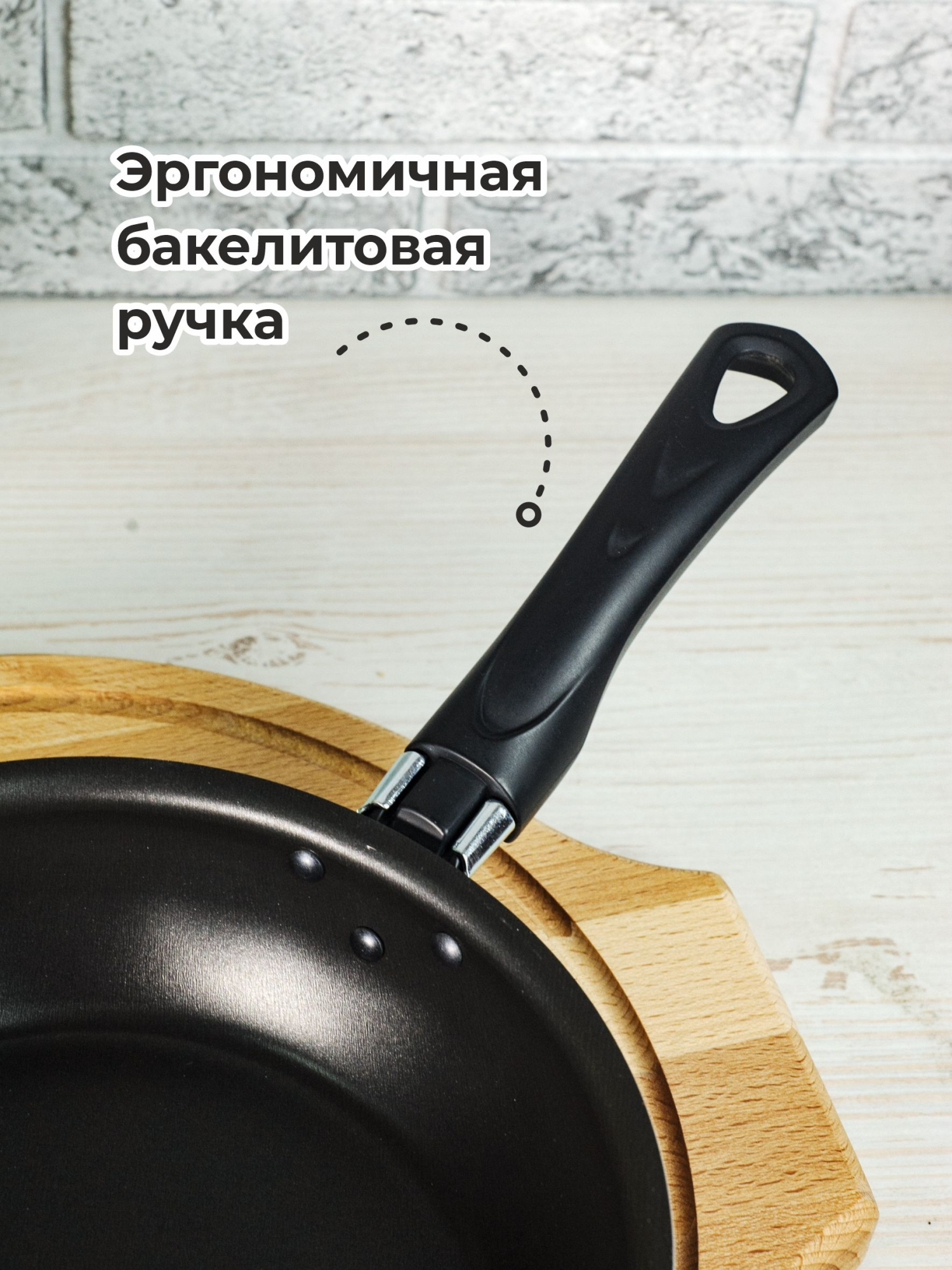 Сковорода обладает рядом неоспоримых преимуществ: минимальным расходом масла из-за очень гладкой поверхности, равномерным нагревом и долговечностью. Кроме этого, пища не прилипает и не пригорает, легко снимается.