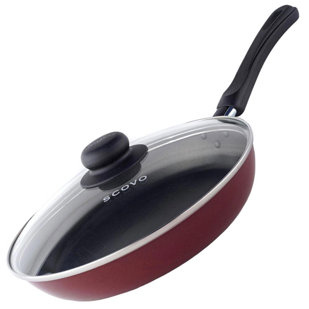 Сковорода оснащена крышкой. Крышка, выполненная из термостойкого стекла, позволяет следить за процессом приготовления, не открывая ее. Специальное отверстие для выхода пара предотвращает выкипание.