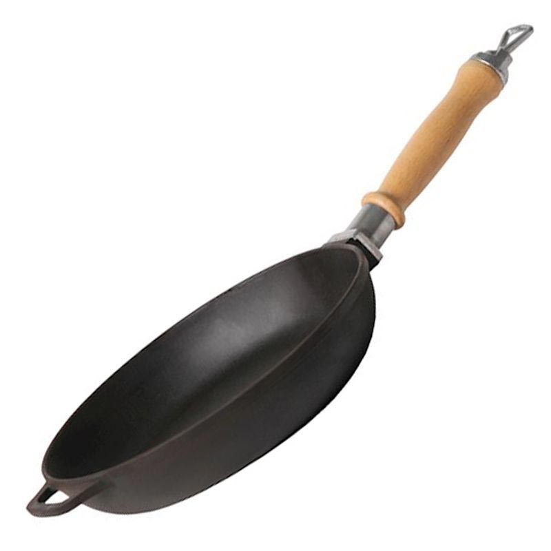 Чугунная сковорода со съемной ручкой в диаметре 220мм - это то, что вам нужно: она объединяет в себе высокое качество, долговечность, износостойкость, совместимость с различными видами плит (газовой, индукционной, электрической, керамической, галогенной).