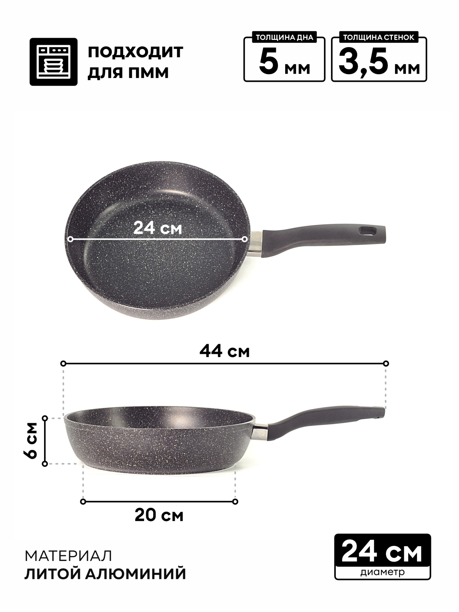 Основа посуды из литого термоаккумулирующего алюминия, благодаря которому поступившее тепло равномерно распределяется по поверхности посуды.
