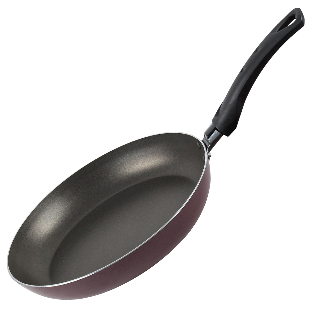 Сковорода O26х4,5 см, листовой алюминий 1,5мм, антипригарное покрытие, бакелитовая ручка, цвет бордо. Перед первым использованием тщательно вымойте посуду. Используйте деревянные и пластиковые аксессуары. Не допускайте нагрева пустой посуды. Применяйте мягкие моющие средства, не используйте металлические аксессуары, абразивы. Не допускайте соприкосновения пластмассовых элементов посуды с пламенем газовой горелки, не используйте посуду с пластмассовыми элементами для приготовления пищи в духовом шкафу. Не используйте посуду с антипригарным покрытием для приготовления и хранения кислот, щелочей и концентрированных солей.