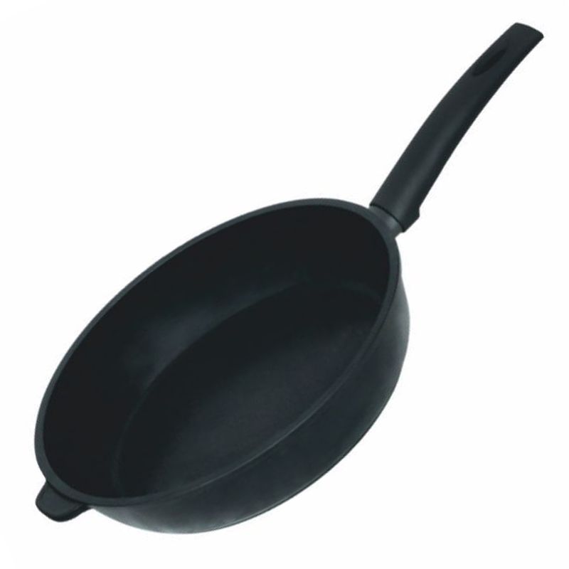 Литая алюминиевая сковорода с утолщенным дном с немецким антипригарным покрытием Greblon С2+ с бакелитовой ручкой (покрытие soft touch) Есть дополнительная литая ручка для удобства.