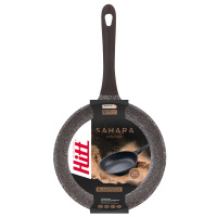 Сковорода Hitt "Sahara BlackRock" HS-BRF26 изготовлена из литого алюминия с 3-х слойным антипригарным покрытием Greblon C3+. Двухкомпонентная ручка с покрытием soft-touch, не нагревается, есть отверстие для подвеса. Сковородка продается без крышки.