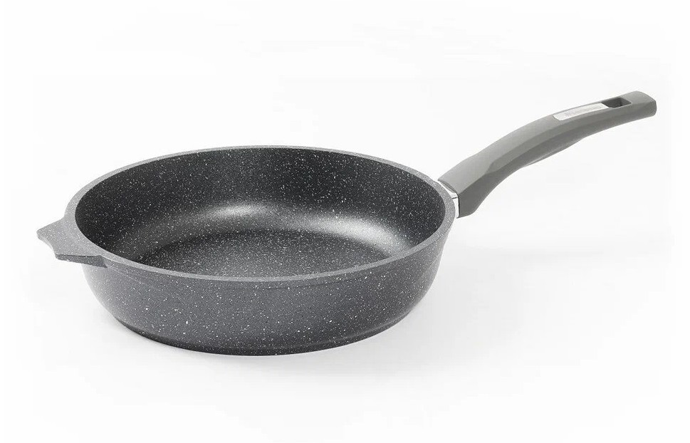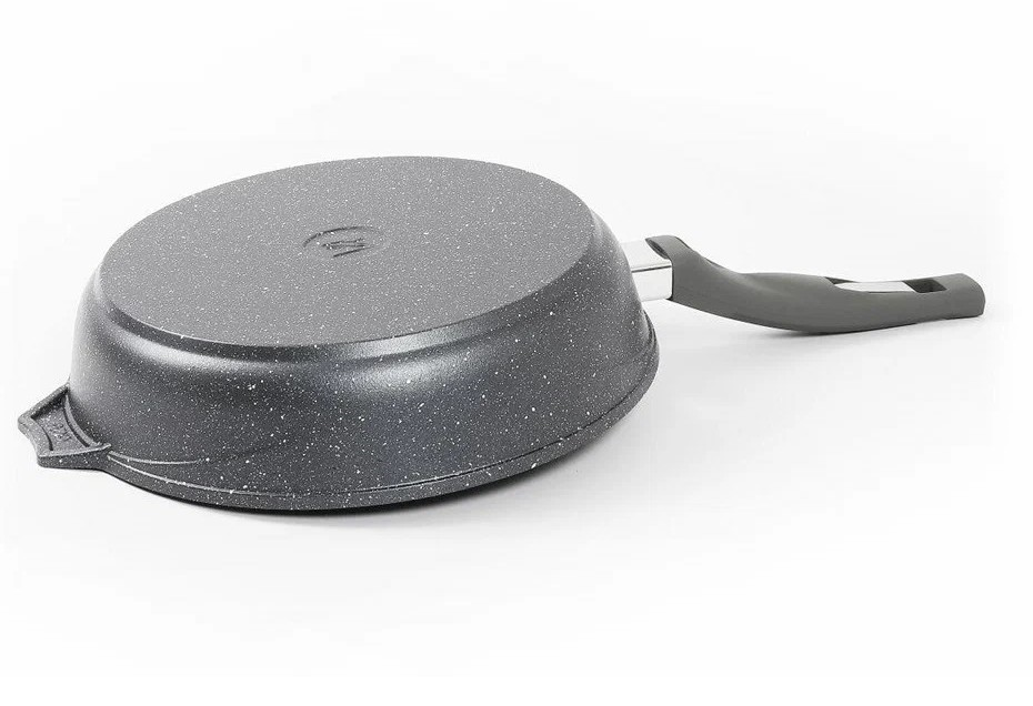 Сковорода из литого толстостенного алюминия «Мечта» станет незаменимым инструментом и надежным помощником на вашей кухне. Многофункциональная сковорода Гранит отлично подойдет для приготовления разнообразных блюд из мяса, рыбы и овощей. Благодаря термоаккумулирующим свойствам пищевого алюминия, пища на сковороде Гранит не пригорает, а томится, а благодаря новейшей формуле сверхпрочного антипригарного покрытия готовить можно при минимальном количестве масла не переживая за то что пища может пригореть. На посуде ТМ «Мечта» можно жарить, тушить и варить без потерь вкусовых и полезных качеств продуктов. Сковорода гранит из литого высококачественного пищевого алюминия «Мечта» станет незаменимым инструментом и надежным помощником на вашей кухне.Серия Гранит — это литая алюминиевая посуда с антипригарным покрытием повышенной стойкости, с содержанием частиц твердых минералов.