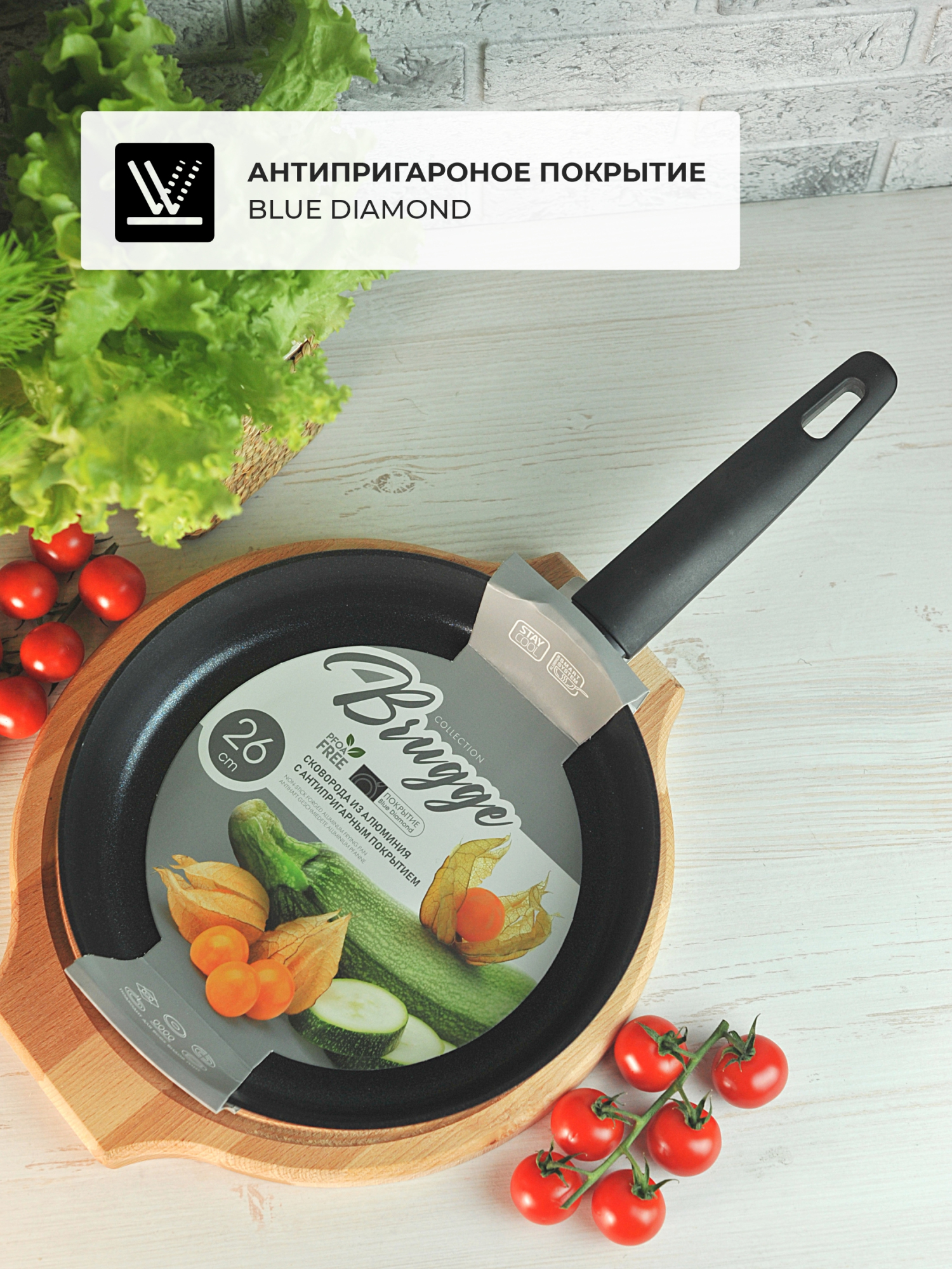 Это качественная антипригарная сковорода для всех типов плит (включая индукцию), с безопасным покрытием, удобной ручкой и главной фишкой — корпусом из алюминия, который обеспечивает равномерный нагрев без «горячих точек».