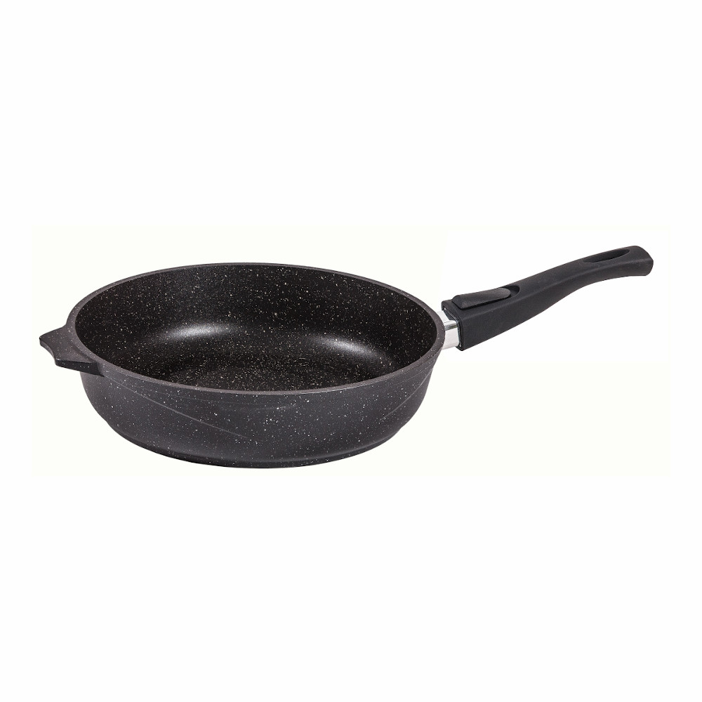 Сковорода из литого толстостенного алюминия «Мечта» станет незаменимым инструментом и надежным помощником на вашей кухне. Многофункциональная сковорода Гранит отлично подойдет для приготовления разнообразных блюд из мяса, рыбы и овощей. Благодаря термоаккумулирующим свойствам пищевого алюминия, пища на сковороде Гранит не пригорает, а томится, а благодаря новейшей формуле сверхпрочного антипригарного покрытия готовить можно при минимальном количестве масла не переживая за то что пища может пригореть. На посуде ТМ «Мечта» можно жарить, тушить и варить без потерь вкусовых и полезных качеств продуктов. Сковорода гранит из литого высококачественного пищевого алюминия «Мечта» станет незаменимым инструментом и надежным помощником на вашей кухне.Серия Гранит — это литая алюминиевая посуда с антипригарным покрытием повышенной стойкости, с содержанием частиц твердых минералов.