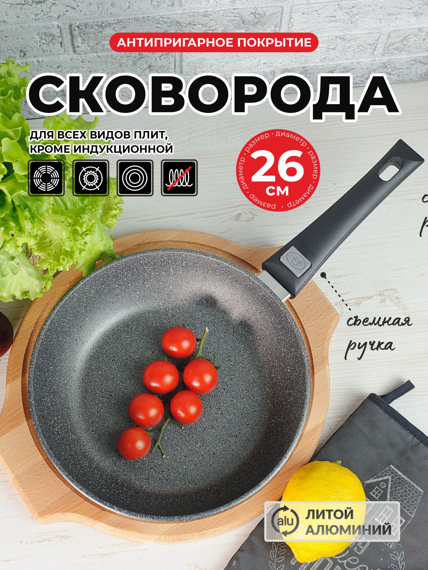 Корпус сковороды из литого алюминия быстро нагревается, не подвергается деформации и отлично держит жар, что позволяет готовить блюда любой сложности. Увеличенная высота стенок и удачный радиус скругления бортов облегчает перемешивание пищи и уменьшает количество брызг. Антипригарное покрытие Whitford Quantum2 с двойным усилением армировано смесью частиц высокой прочности самых современных материалов и имеет великолепную абразивную износоустойчивость. Для вашего удобства сковорода комплектуется съемной ручкой, что позволяет экономить место при хранении и использовать сковороду в духовом шкафу. Покрытие не содержит PFOA, поэтому безопасно для человека. Изделие подходит для газовых, электрических и стеклокерамических плит, а также можно использовать в духовке, предварительно сняв ручку. Можно мыть в посудомоечной машине.