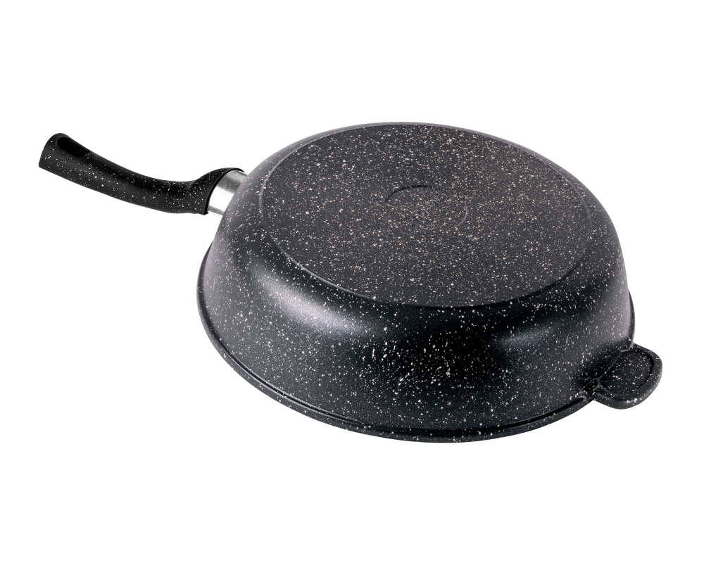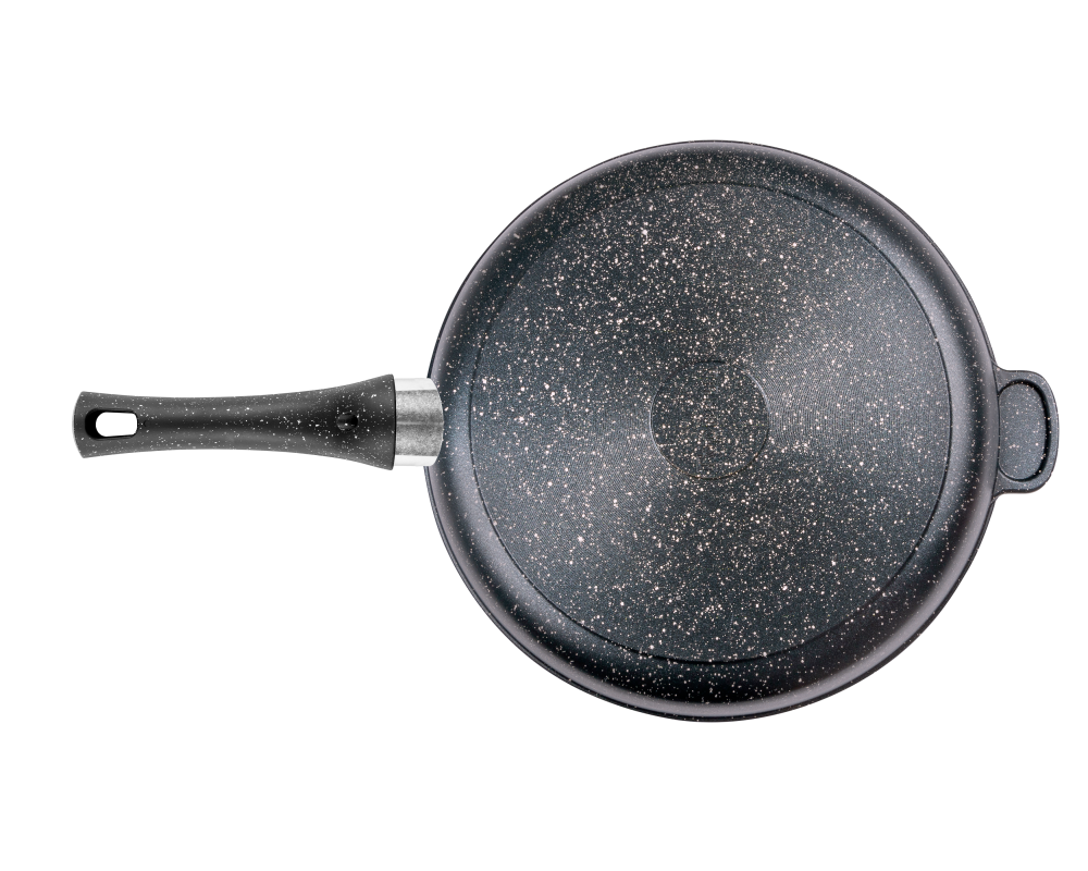 Сковорода изготовлена из высококачественного литого алюминия, который отличается исключительной долговечностью, равномерным нагревом и способностью сохранять тепло. Это способствует экономии энергии и ускоряет процесс приготовления пищи. Утолщенное дно обеспечивает равномерное распределение тепла, что положительно сказывается на качестве блюд.