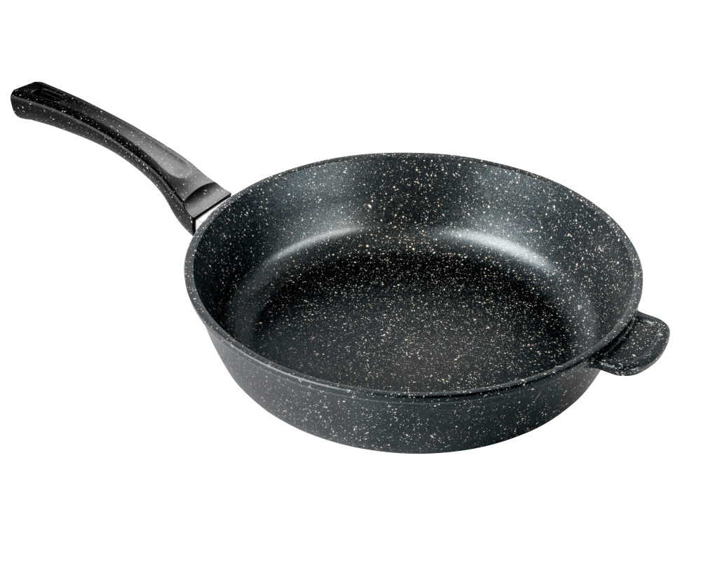 Сковорода изготовлена из высококачественного литого алюминия, который отличается исключительной долговечностью, равномерным нагревом и способностью сохранять тепло. Это способствует экономии энергии и ускоряет процесс приготовления пищи. Утолщенное дно обеспечивает равномерное распределение тепла, что положительно сказывается на качестве блюд.