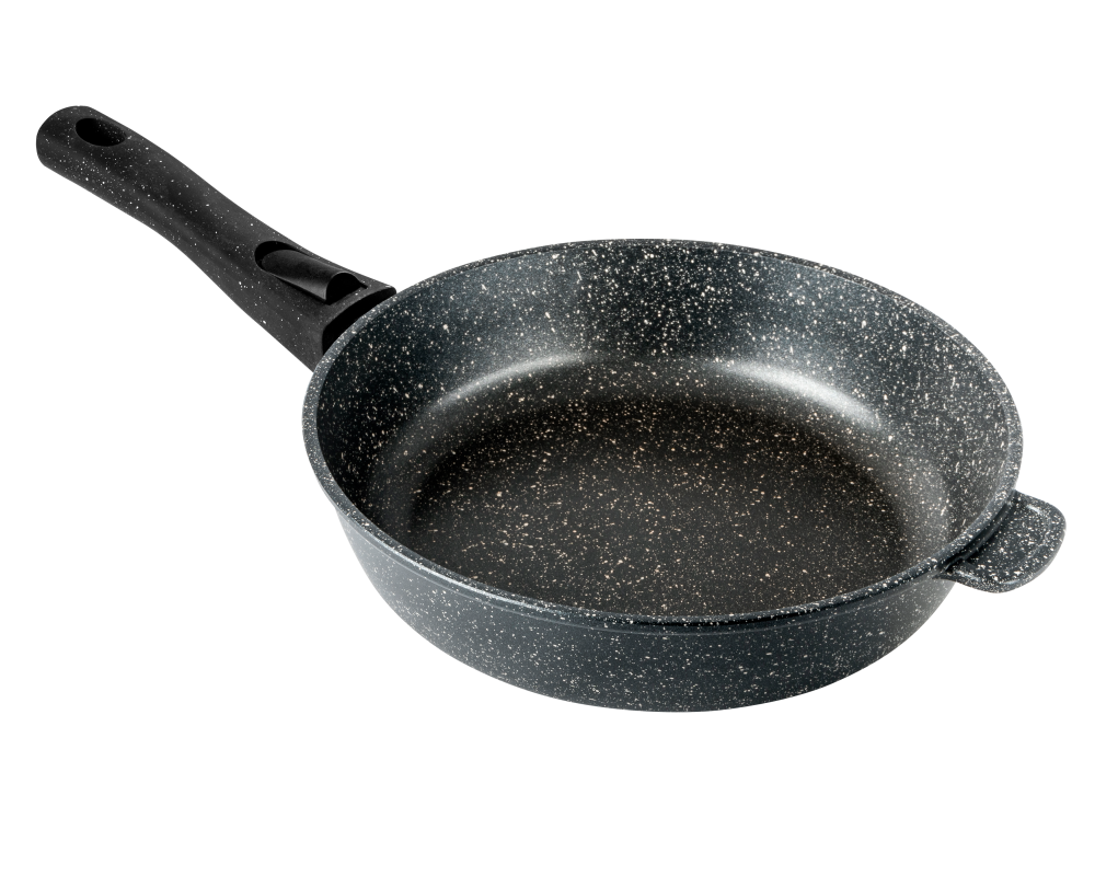 Сковорода изготовлена из высококачественного литого алюминия, который отличается исключительной долговечностью, равномерным нагревом и способностью сохранять тепло. Это способствует экономии энергии и ускоряет процесс приготовления пищи. Утолщенное дно обеспечивает равномерное распределение тепла, что положительно сказывается на качестве блюд.