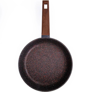 Сковорода «Гранит-15» из литого алюминия подходит для ежедневного приготовления разнообразных блюд. Изделие произведено в соответствии со строгими нормами технического контроля. Особенности: покрытие Greblon C2+ защищает от пригорания; удобная ручка облегчают хват; поверхность изделия легко отмывается; благодаря качественной проточке дно прогревается максимально быстро. Сковороду можно мыть в посудомоечной машине. Подходит для всех типов плит, кроме индукционных. Толщина стенки — 3,5 мм, дна — 6 мм. Не содержит PFOA.