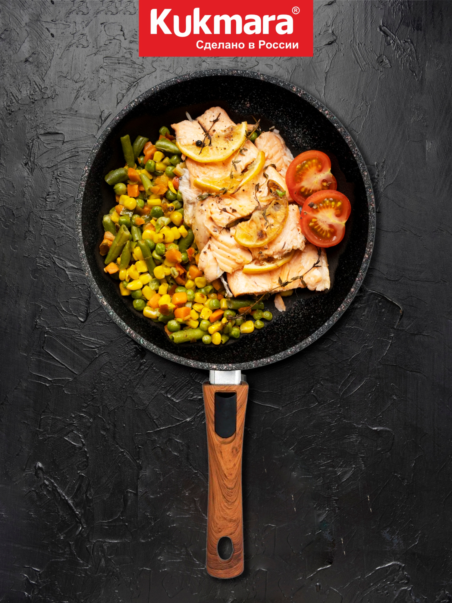 Сковорода "Kukmara" изготовлена из литого алюминия и покрыта уникальным ультрапрочным антипригарным покрытием "Ultra granit".