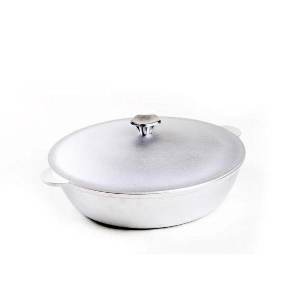 Глубокая сковорода из алюминия имеет ровное дно, на поверхности которого нет пор и шероховатостей.