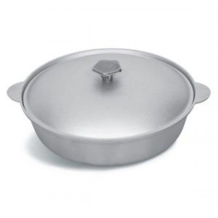 Глубокая сковорода из алюминия имеет ровное дно, на поверхности которого нет пор и шероховатостей.