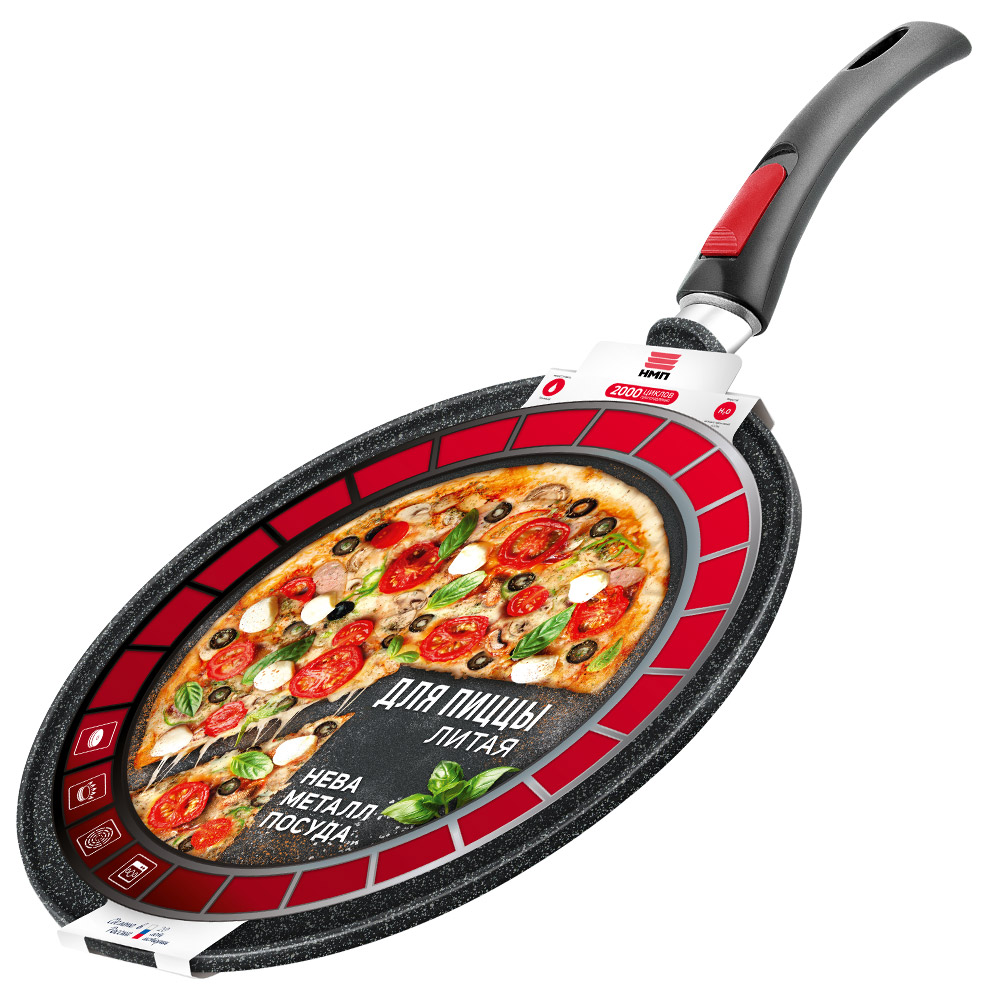 Съемная ручка имеет надежный и удобный механизм: помещая пиццу в духовку, снять и надеть ручку можно одной рукой. Утолщенное дно обеспечивает особые термоаккумулирующие свойства, благодаря чему пицца равномерно пропекается и красиво румянится. Антипригарное покрытие отлично выполняет свою функцию: тесто не пристаёт, легко и удобно сервировать готовое блюдо к подаче на стол - пицца с минимальной помощью перемещается на блюдо.