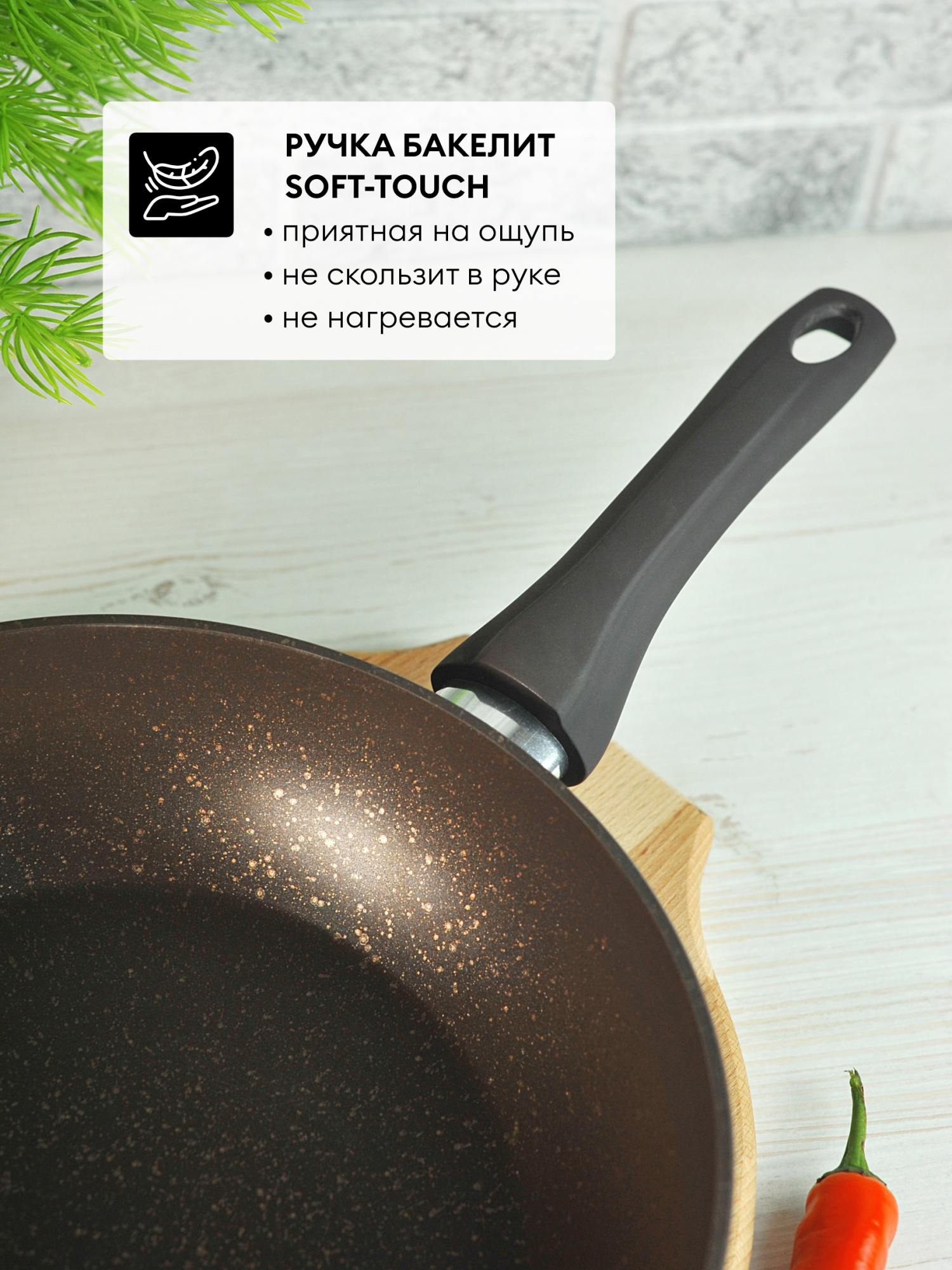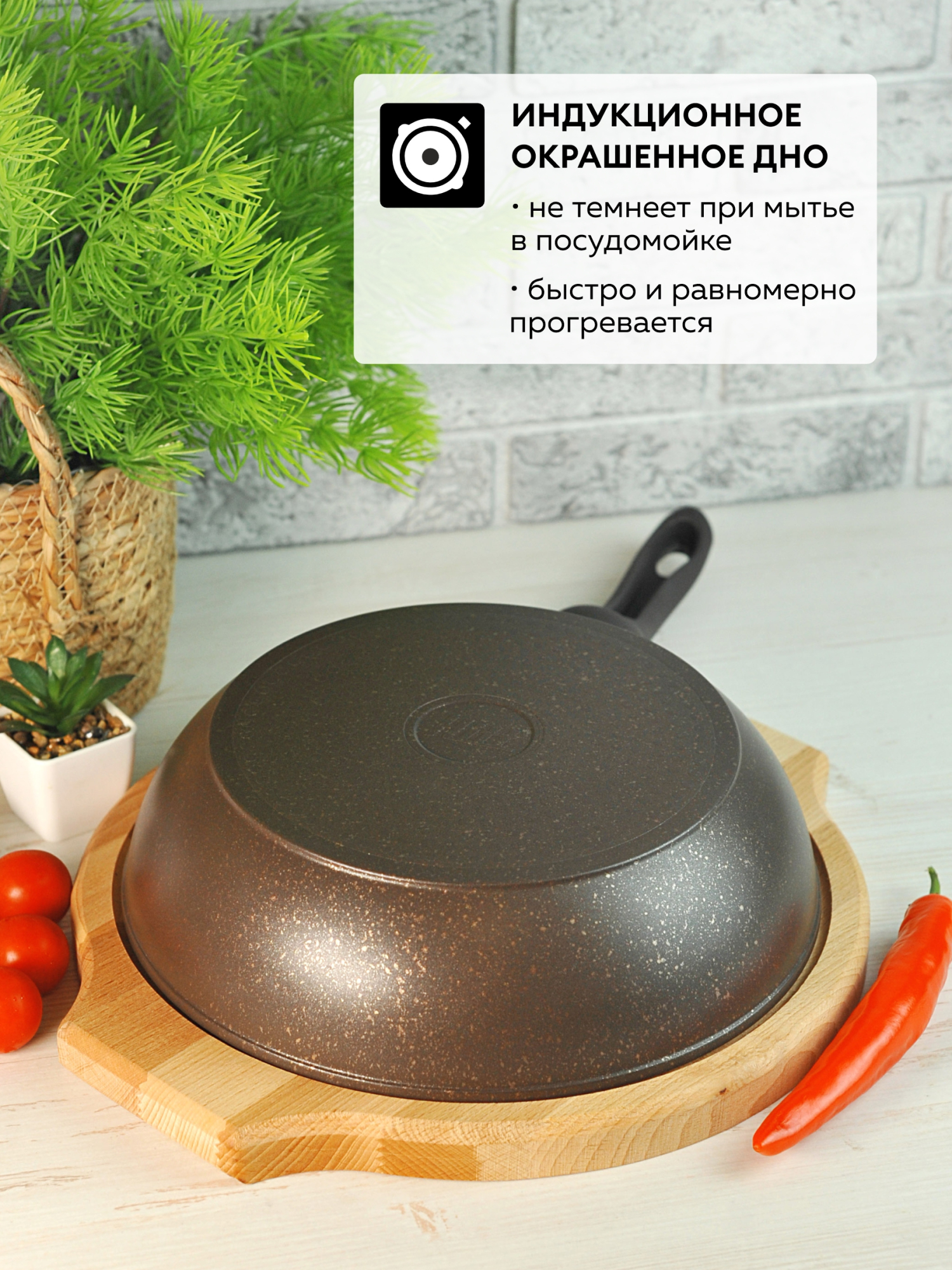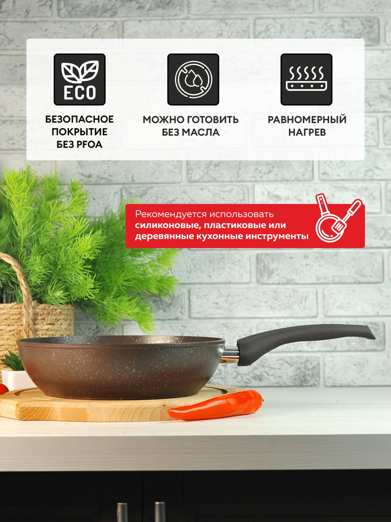 Сковорода Hitt "Sahara Sandy" – эргономичная посуда для приготовления вкусной полезной пищи. Она отличается удобством и практичностью. Материал в посуде не покрывается копотью, не плавится, не теряет форму, не выделяет неприятный запах и не меняет вкус продуктов. Подходит для всех видов плит, в том числе индукционных.