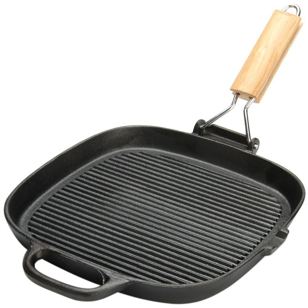 Чугунная сковорода-гриль подходит для жарки мяса, рыбы, сыра и овощей.