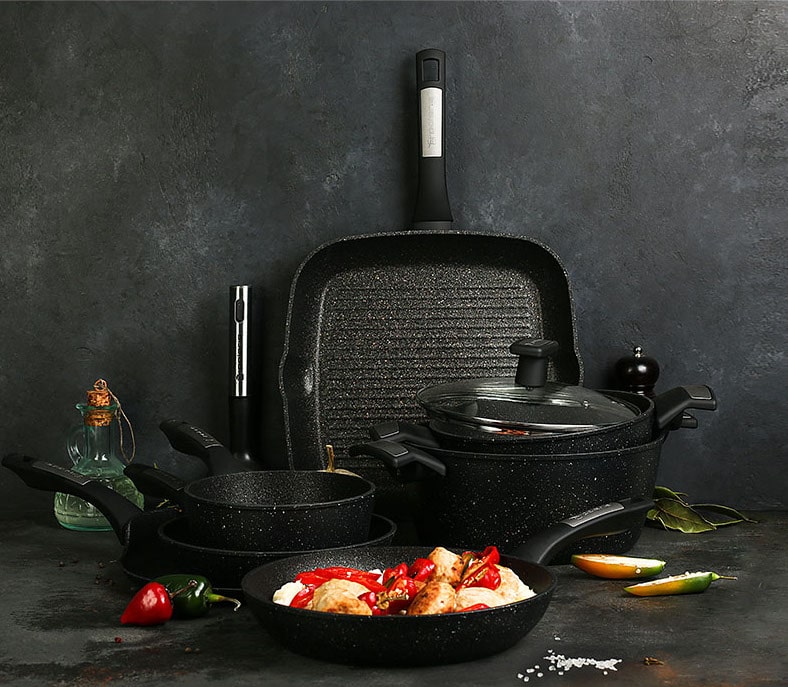 • Покрытие: инновационное 5-слойное антипригарное покрытие с керамической крошкой (MEGASTONE PRO-5)