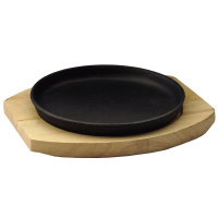 Порционная сковорода имеет декоративную форму и комплектуется деревянной подставкой.