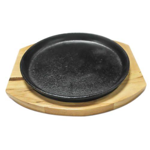 Порционная сковорода имеет круглую форму и комплектуется деревянной подставкой.