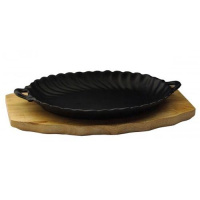 Порционная сковорода имеет декоративную форму и комплектуется деревянной подставкой.