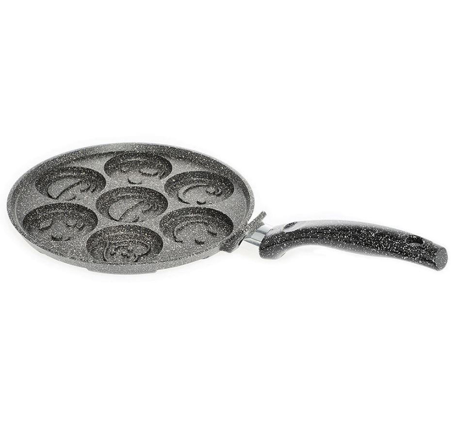 Сковорода-оладница литая алюминиевая с пластиковой несъемной ручкой, утолщенным дном и антипригарным покрытием