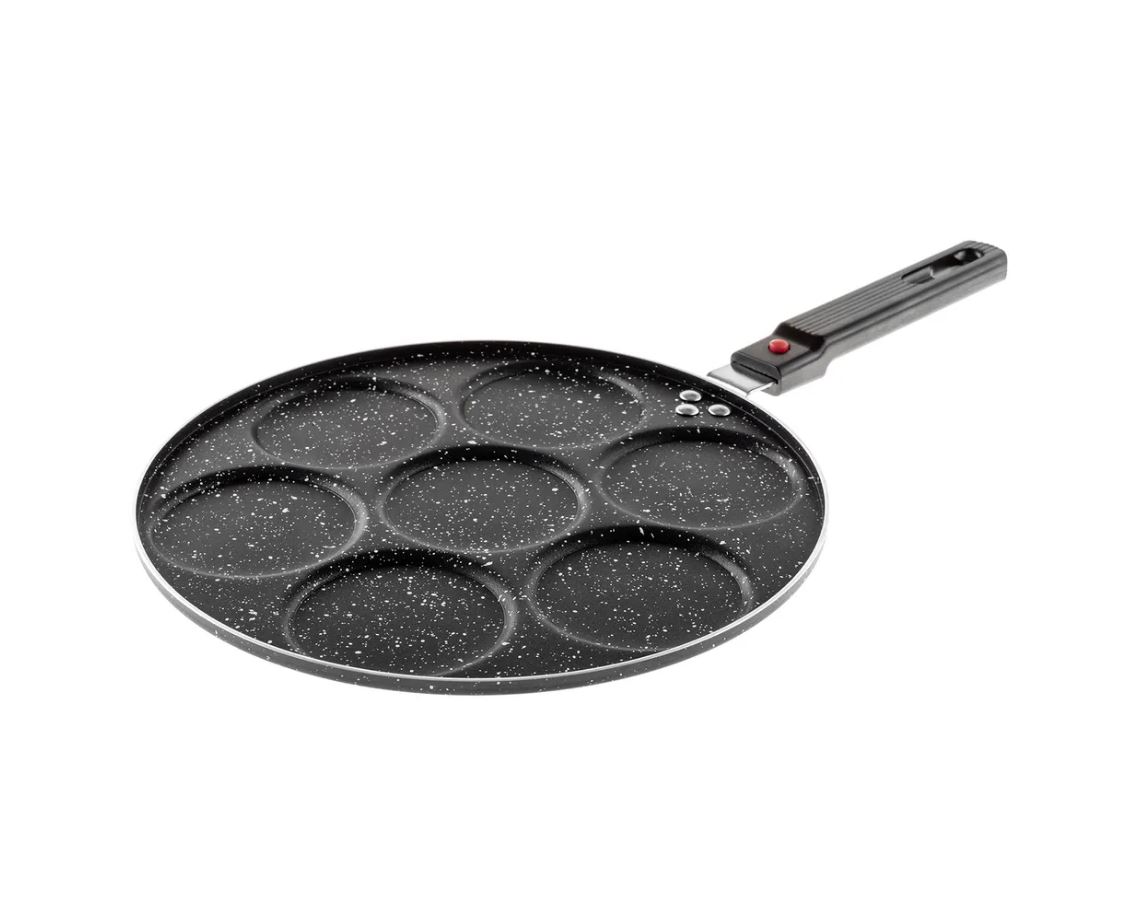 Сковорода для оладий Hitt Crepe, изготовленная из алюминия с антипригарным покрытием, предназначена специально для оладий, яичницы и панкейков. Благодаря специальной литой форме и толстому дну сковорода устойчиво размещается на плите, равномерно нагревается и удерживает тепло. Оладьи быстро пропекаются и подрумяниваются. Эргономичная пластиковая ручка не нагревается во время работы.