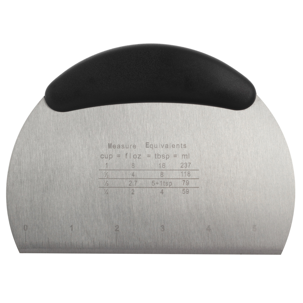 Шпатель-скребок кондитерский металлический с ручкой необходим каждому кондитеру: он позволяет нарезать тесто, придать рельеф поверхности выпечки или сделать её идеально ровной. С его помощью можно буквально за 2 круга идеально выровнять торт на вращающейся подставке. Также с его помощью можно аккуратно отсоединить продукт от противня. Очень удобен для работы с шоколадом.
