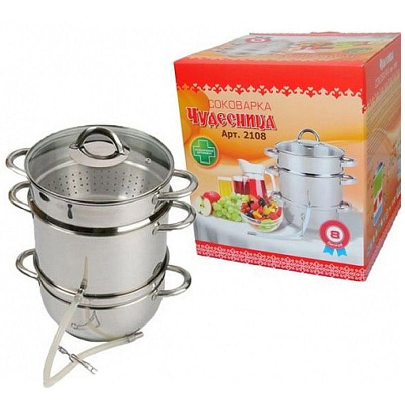 Соковарка "Чудесница" помогает быстро осуществить варку, приготовить сок, компот, отвары на основе фруктов и трав.
