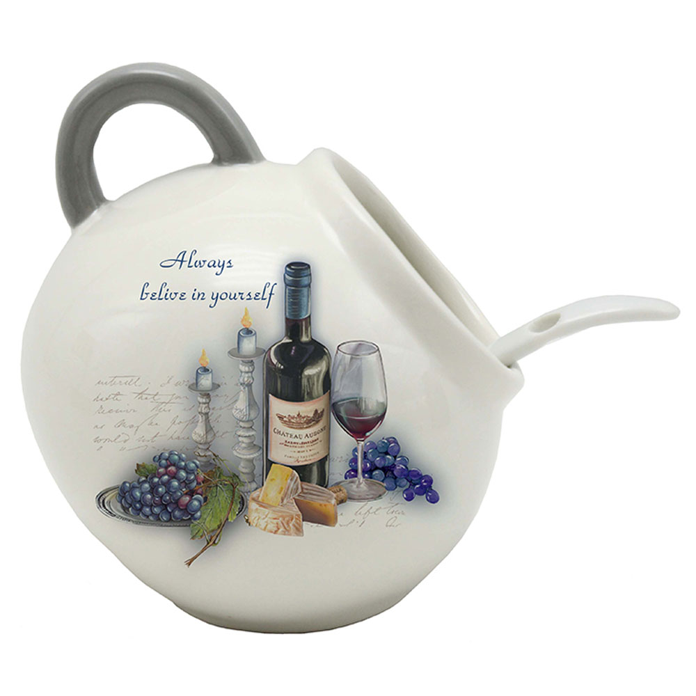 Солонка с ложкой, с помощью которой удобно отмерять количество соли, необходимое для блюд. Изделие отлично впишется в интерьер кухни и отлично подойдет для сервировке стола. Посуда из доломита красивая, расписанная яркими красками, довольно легкая. За счёт подарочной упаковки отлично подойдет в подарок. Главным ее преимуществом является низкая цена. Из-за пористой (неплотной) структуры изделия из доломита менее прочные, и их нельзя мыть в посудомоечной машине.