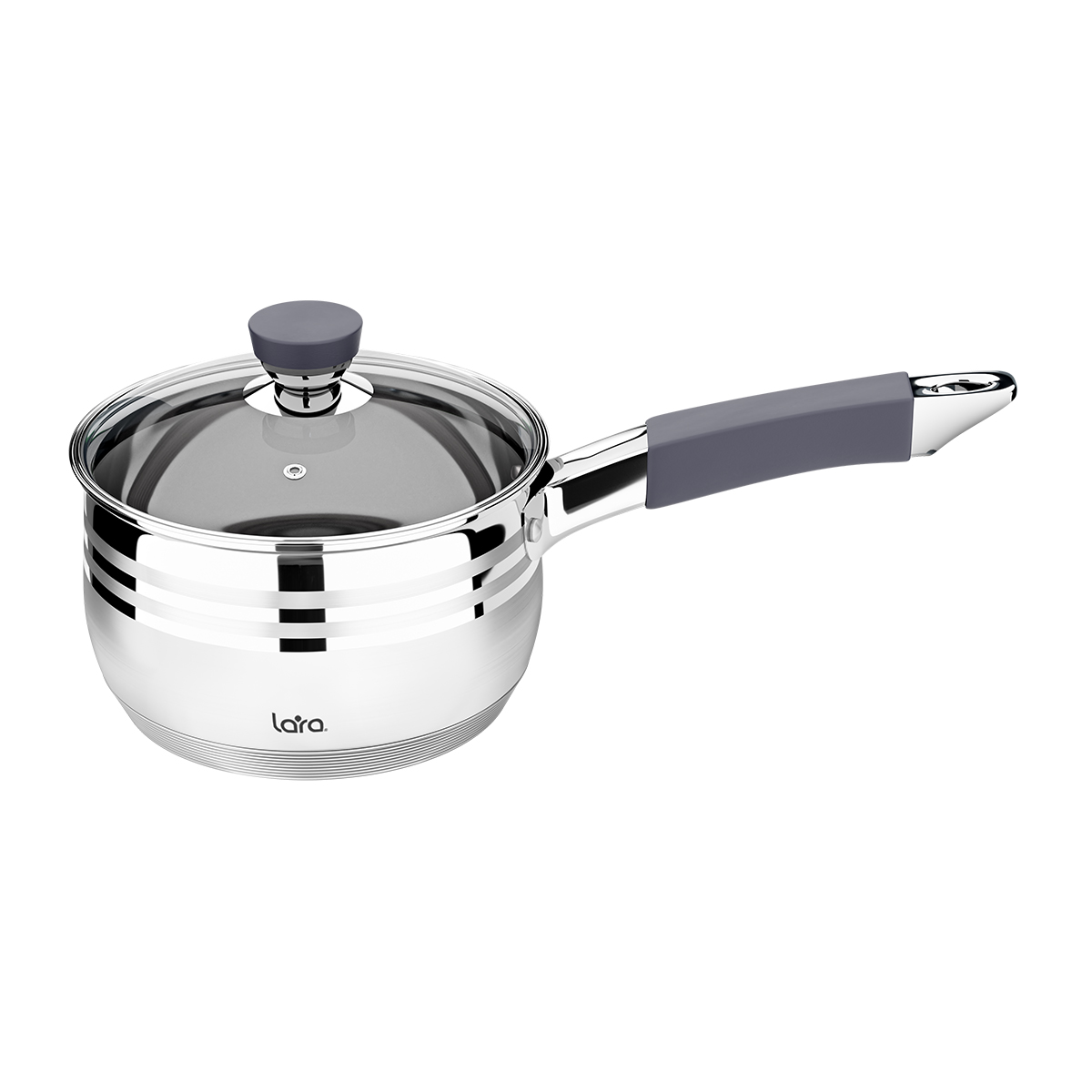 Ковш LARA серии "Mercury" – это роскошный элемент интерьера кухни с акцентом на качество. Благодаря матовой и зеркальной полировке стали, посуда выглядит безупречно. Термоупорный силикон на ручке и крышке изделия защитит от ожогов. Толстое индукционное капсулированное дно подходит для всех типов плит и обеспечивает равномерный разогрев.