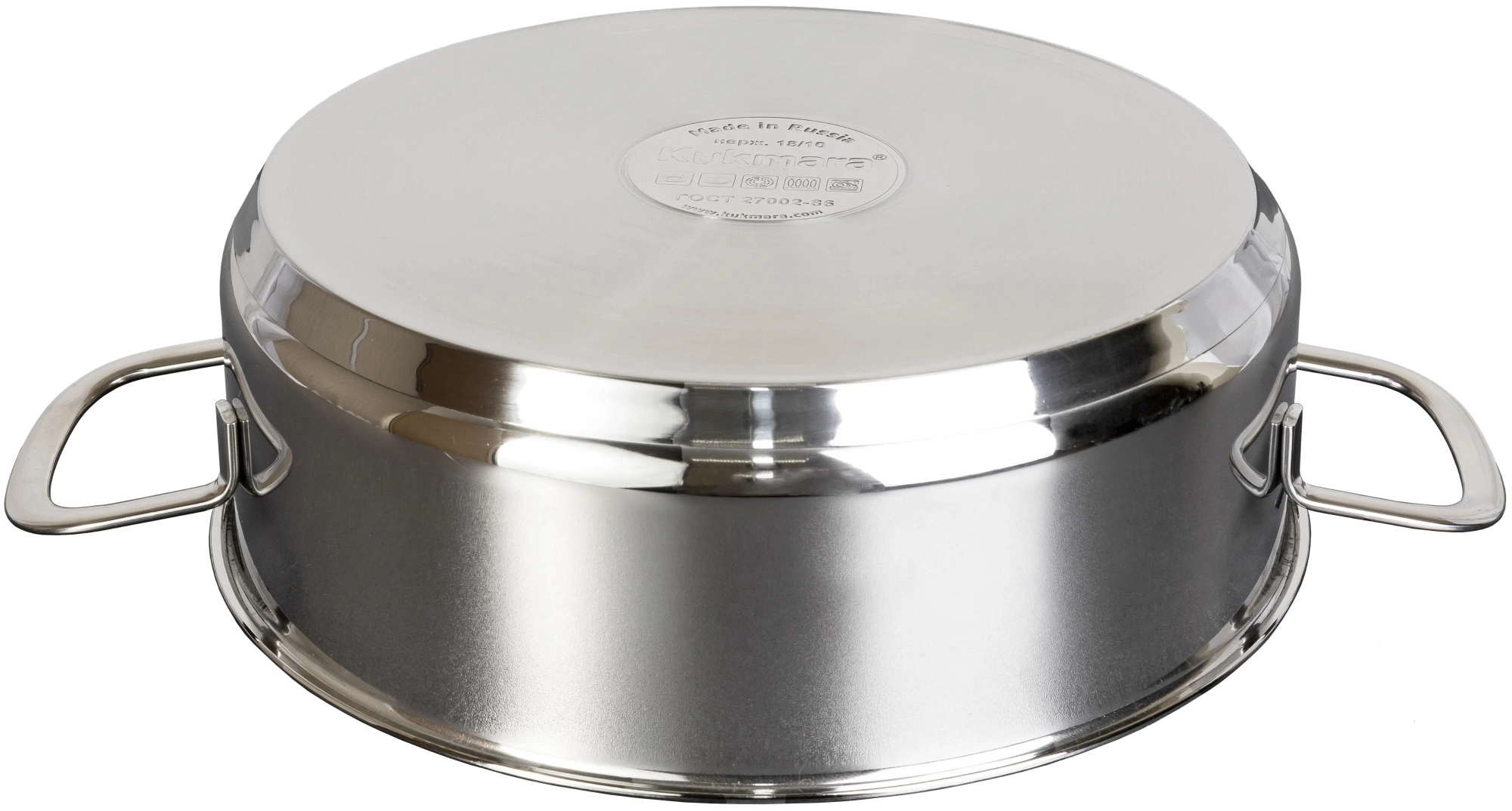 Сотейник создан для низкотемпературной обжарки - чаще всего пассеруют овощи, чтобы их размягчить и раскрыть вкус и аромат. Сотейники Kukmara отличаются широким дном, что позволяет максимально увеличить площадь выпаривания жидкости. Помимо пассерования, сотейники отлично подходит для жарки и тушения и могут использоваться как обычные сковороды. Сотейники из нержавеющей стали Kukmara незаменимы в сезон сбора урожая: в них особенно удобно жарить грибы, делать баклажанную и кабачковую икру. Благодаря металлическим ручкам допускается использование в духовом шкафу.