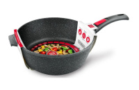 Сотейник выполнен с использованием современной технологии «Full Induction», его дно оснащено цельным ферромагнитным диском, который распознается всеми типами индукционных плит и обеспечивает быстрый разогрев за 70 секунд до идеальной температуры для жарки.