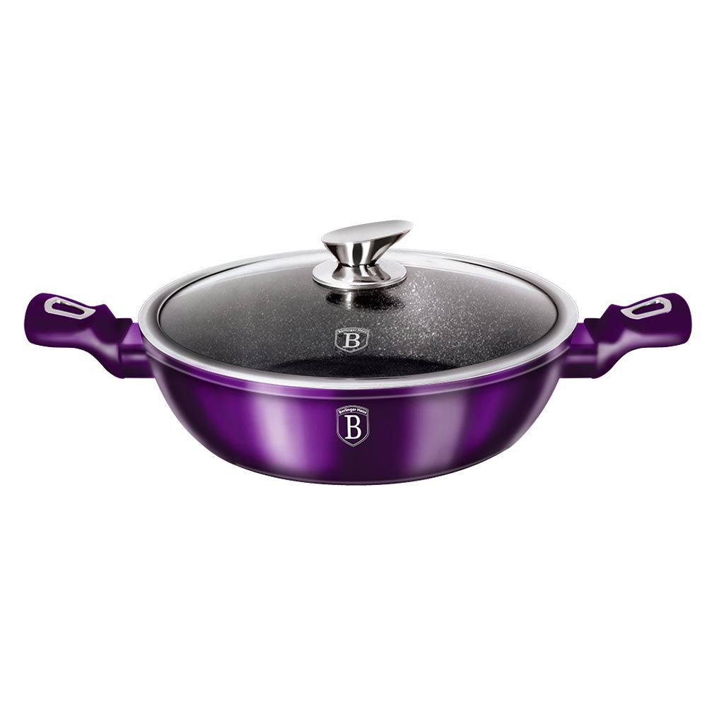 Сотейник "Metallic Line"Royal purple" выполнен из кованого алюминия с 3-х слойным мраморным покрытием. Равномерное распределение температуры по всей поверхности обеспечивает быстрое приготовление пищи. Изделие имеет эргономичные ручки с покрытием "Soft touch" для более удобной переноски. Подходит для всех видов плит.