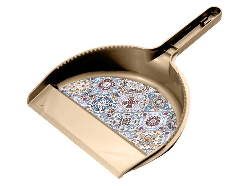 Цветочный декор в марокканском стиле делает изделие приятным инвентарем для хозяйки во время уборки.