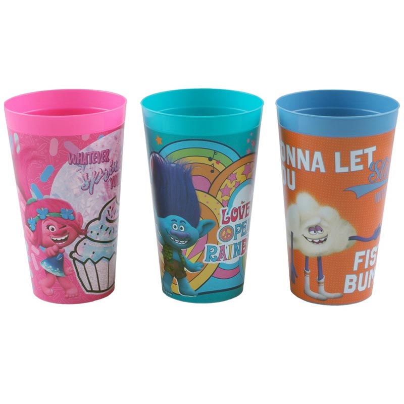 Стакан для сока с декором Тролли 0,4 л. «Trolls» устойчив к мытью в посудомоечной машине и использованию в СВЧ-печи.