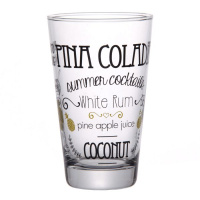 Стакан конической формы изготовлен из натрий-кальций-силикатного стекла. Декорирован тематическим рисунком Пина Колада.