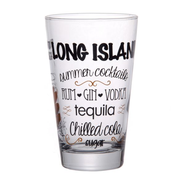 Стакан конической формы изготовлен из натрий-кальций-силикатного стекла. Декорирован тематическим рисунком Лог айленд.