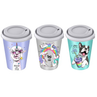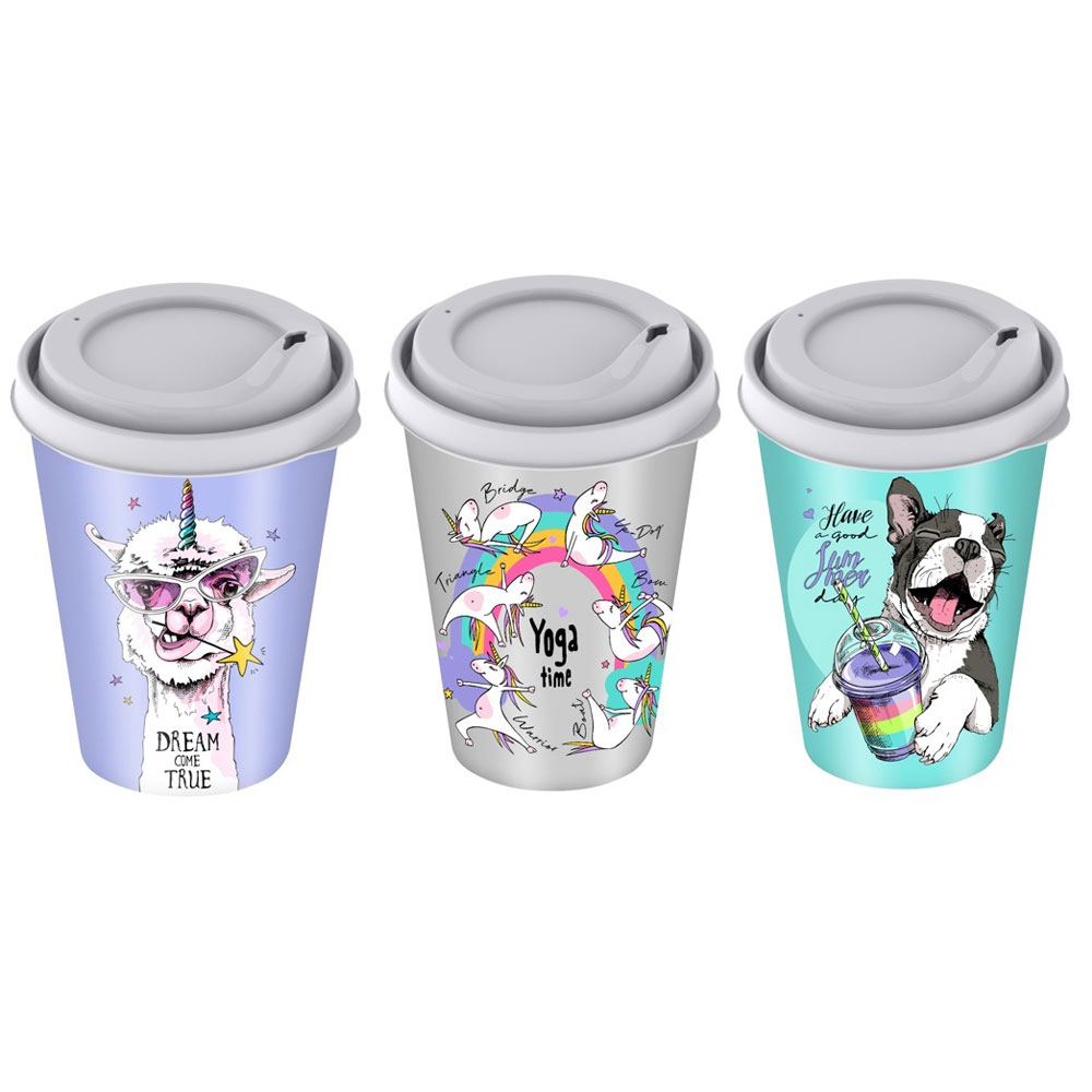 Крышка с носиком имеет язычок для удобного открывания. Использование многоразовых стаканов и кружек для напитков вместо одноразовых не только полезно для экологии, но и делает более приятным приём напитка. IML-декор наносится на весь корпус и вплавляется в изделие на этапе литья, поэтому он не стирается и долго радует глаз.