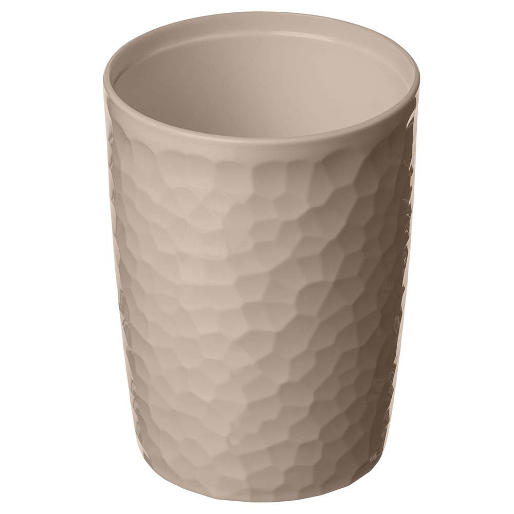 Универсальный стакан для гигиенических и ванных принадлежностей отличается оригинальным декором стенок в стиле ограненного природного камня.