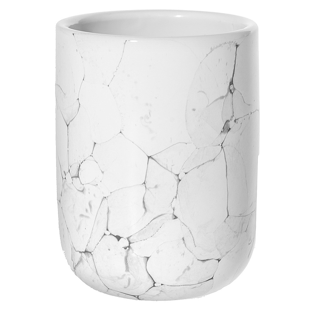 Стакан для ванной, выполненный из керамики. Наш аксессуар не просто так получил свое название - он выполнен в белом цвете с благородны рисунком мрамора, который идеально дополнит интерьер Вашей ванной комнаты.