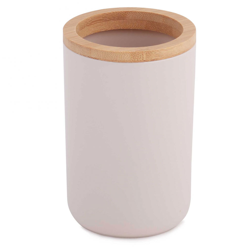 Стакан предназначен для хранения зубных щеток и зубной пасты.Стакан изготовлен из качественного пластика, вставка произведена из натурального растительного материала - бамбук.Пластик не подвержен внешним воздействиям, легко моется и не желтеет со временем.Вставка из бамбука имеет специальную обработку, которая защитит ее от размокания и плесени.Стакан имеет оригинальный дизайн за счет сочетания двух разных материалов.Такое изделие может стать интерьерным решением для создания уюта в ванной комнате.Также коллекция «Бамбук» может быть дополнена другими изделиями для ванной комнаты, такими как подставка для зубных щеток, ерш, мыльница, дозатор для жидкого мыла.